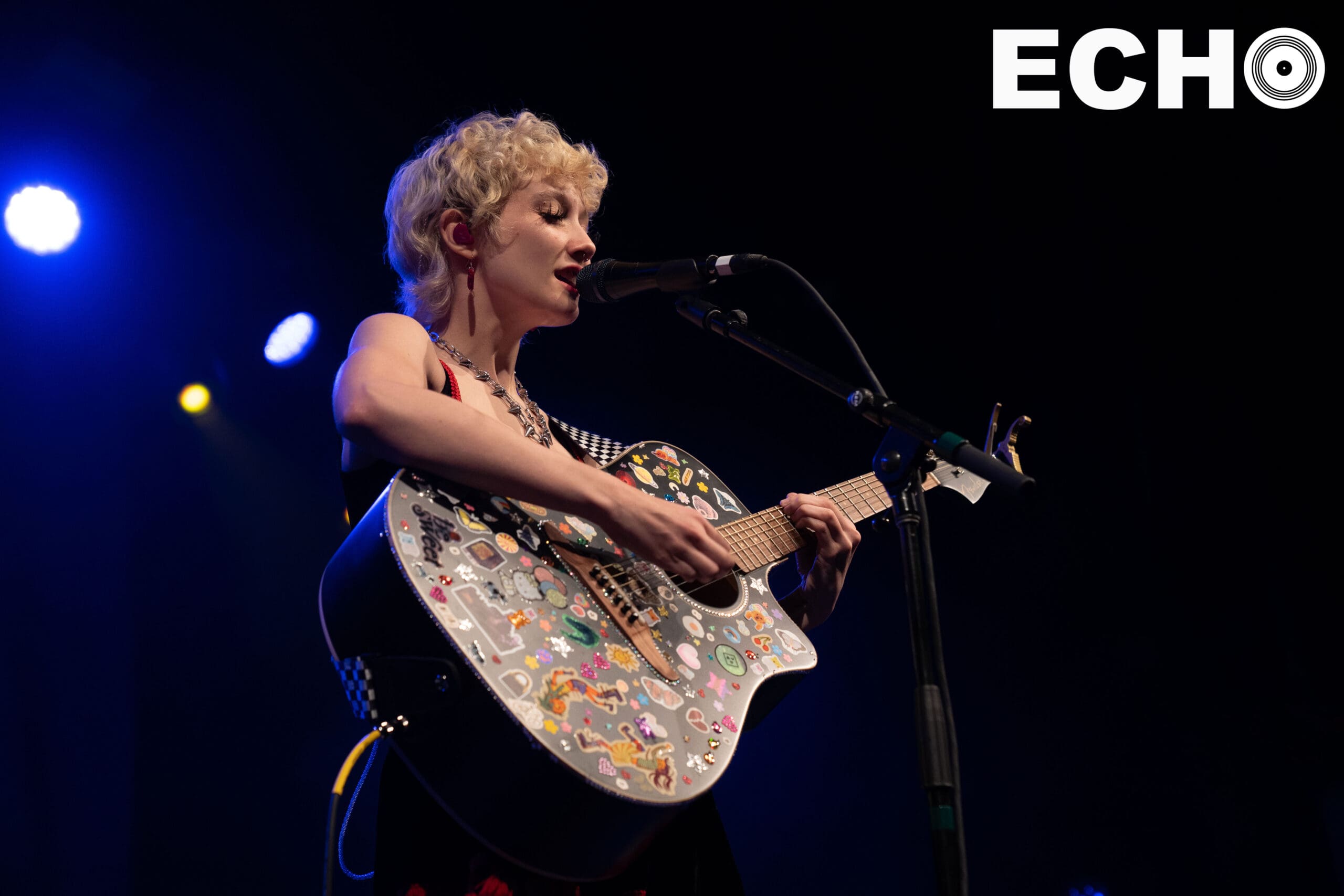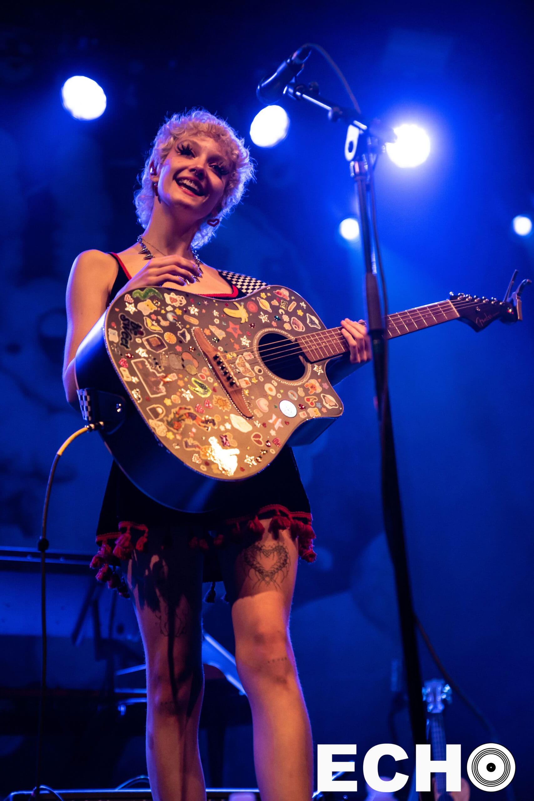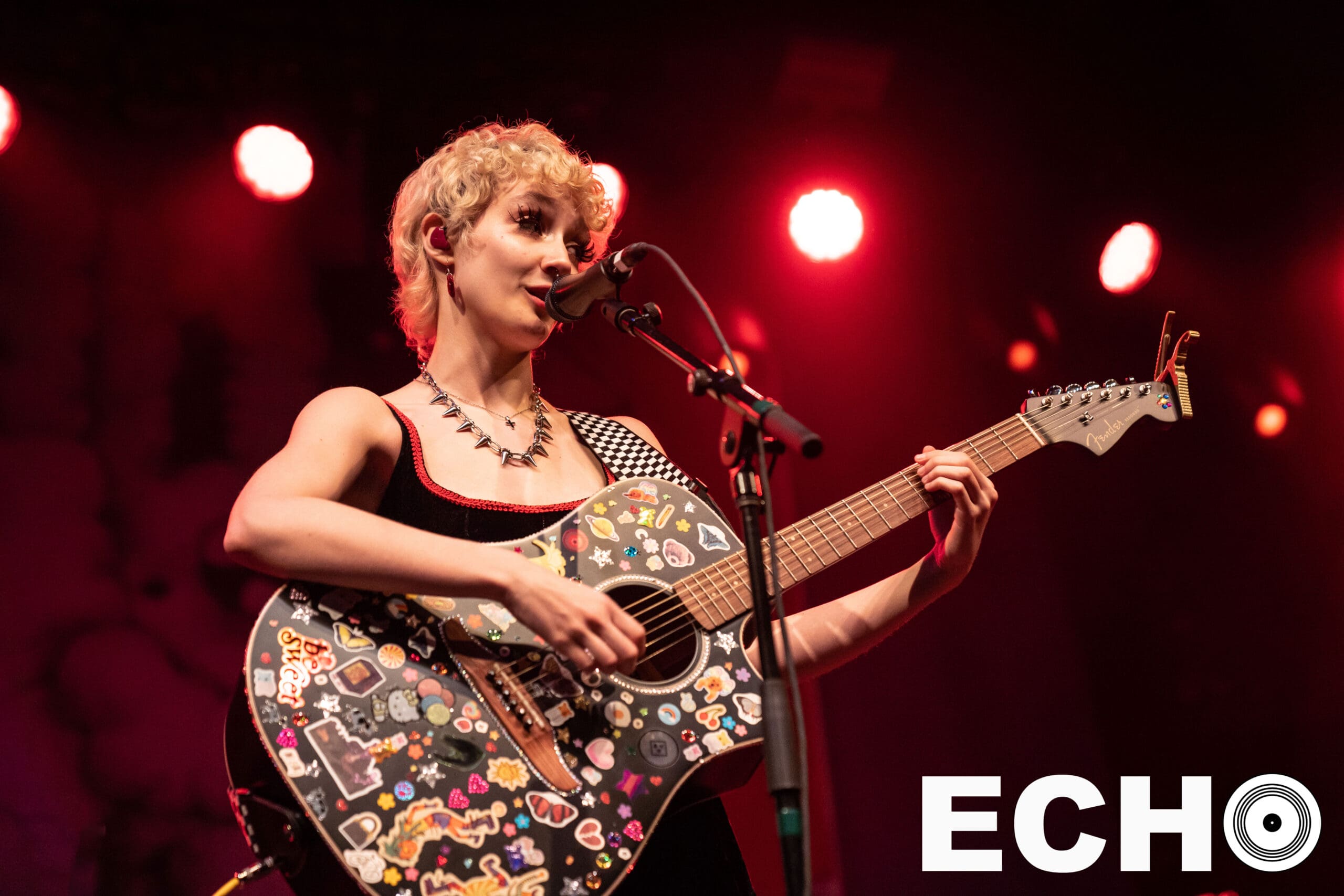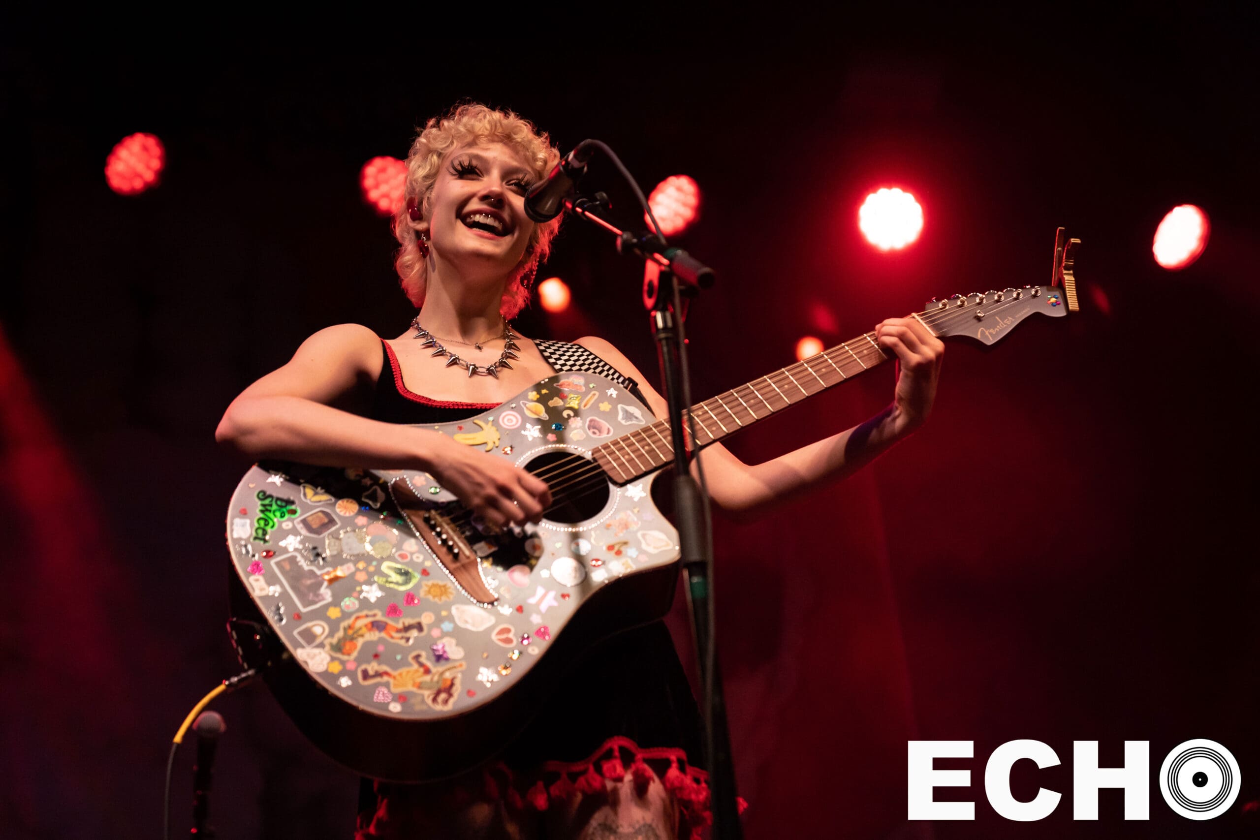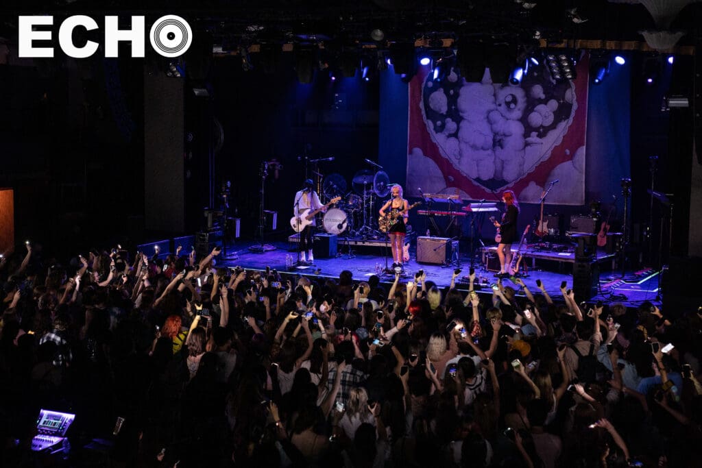 On June 10, in her platform sneakers and holding her sticker mosaiced guitar, Chloe shyly approached the microphone. With a wave, a smile, and a wish for a “Happy Pride,” Chloe began creating the welcoming environment that extended into the main act, mxmtoon’s set.