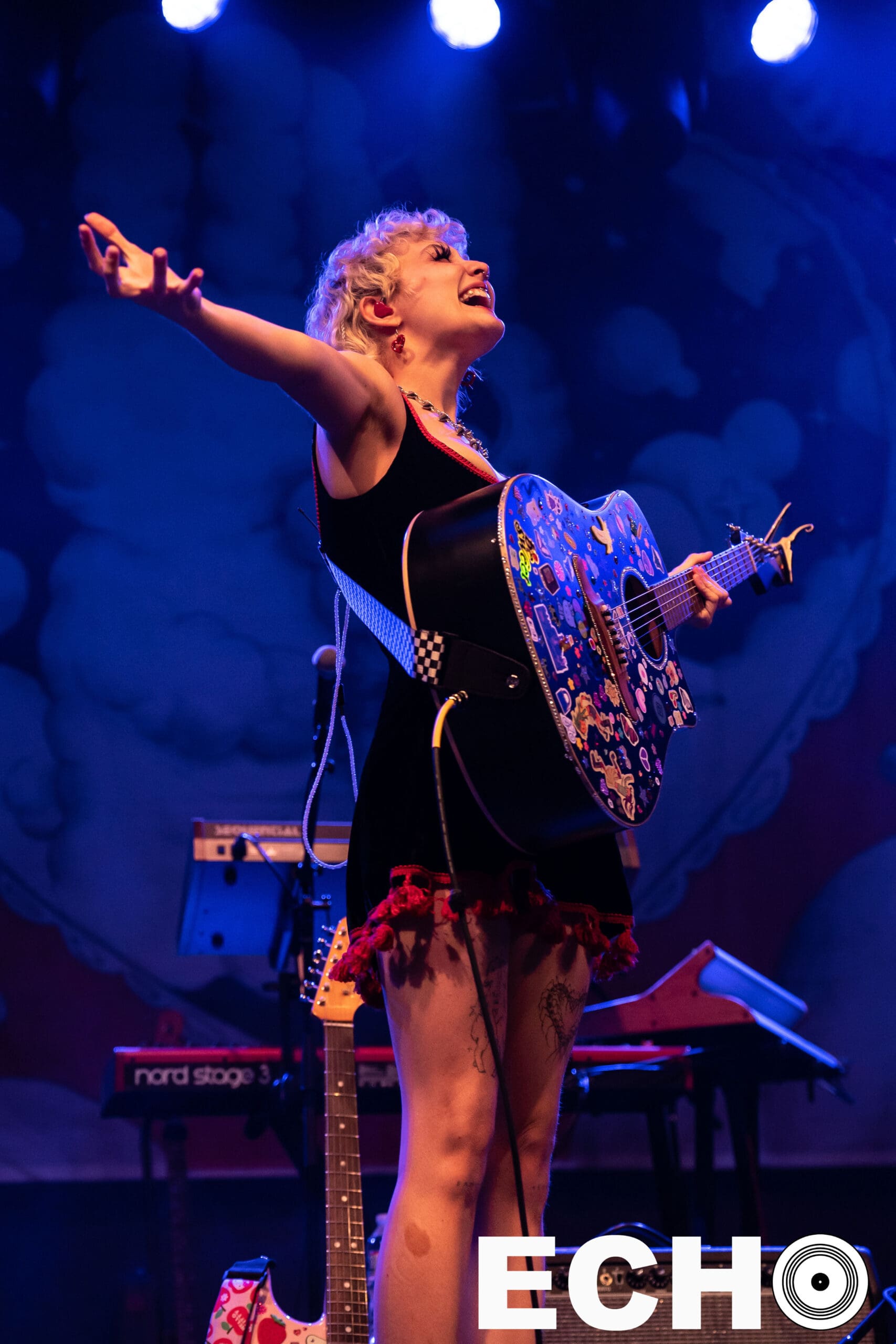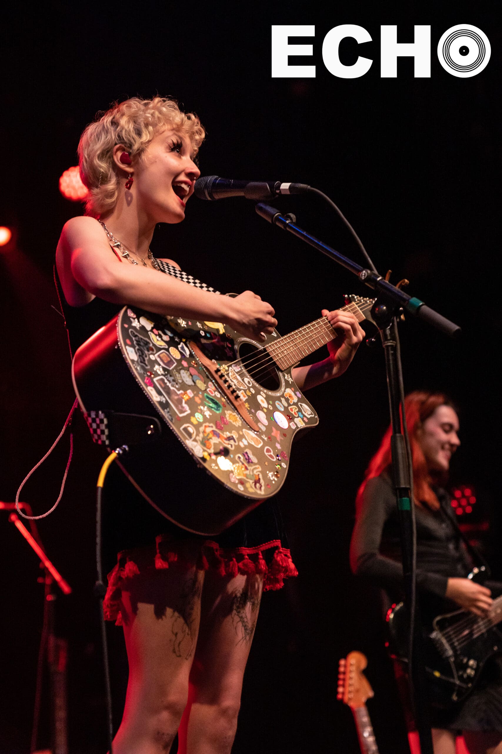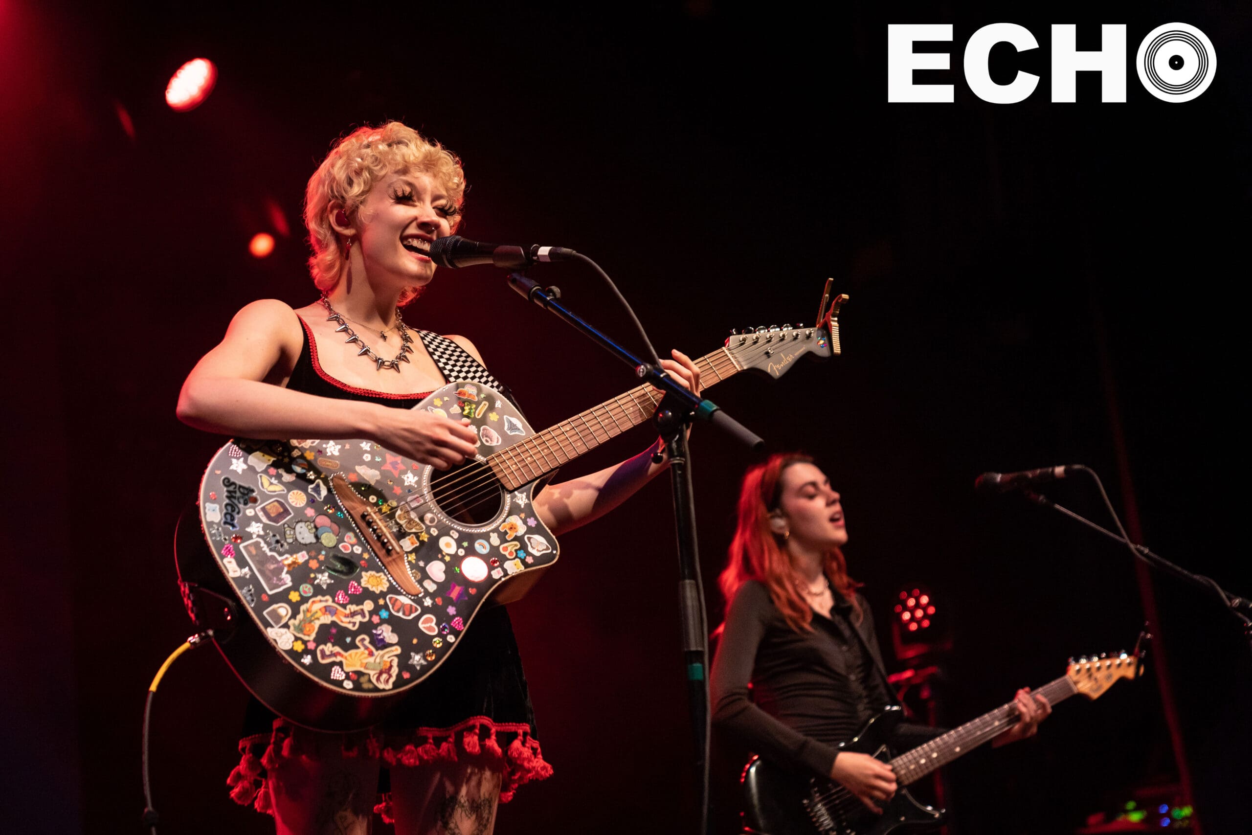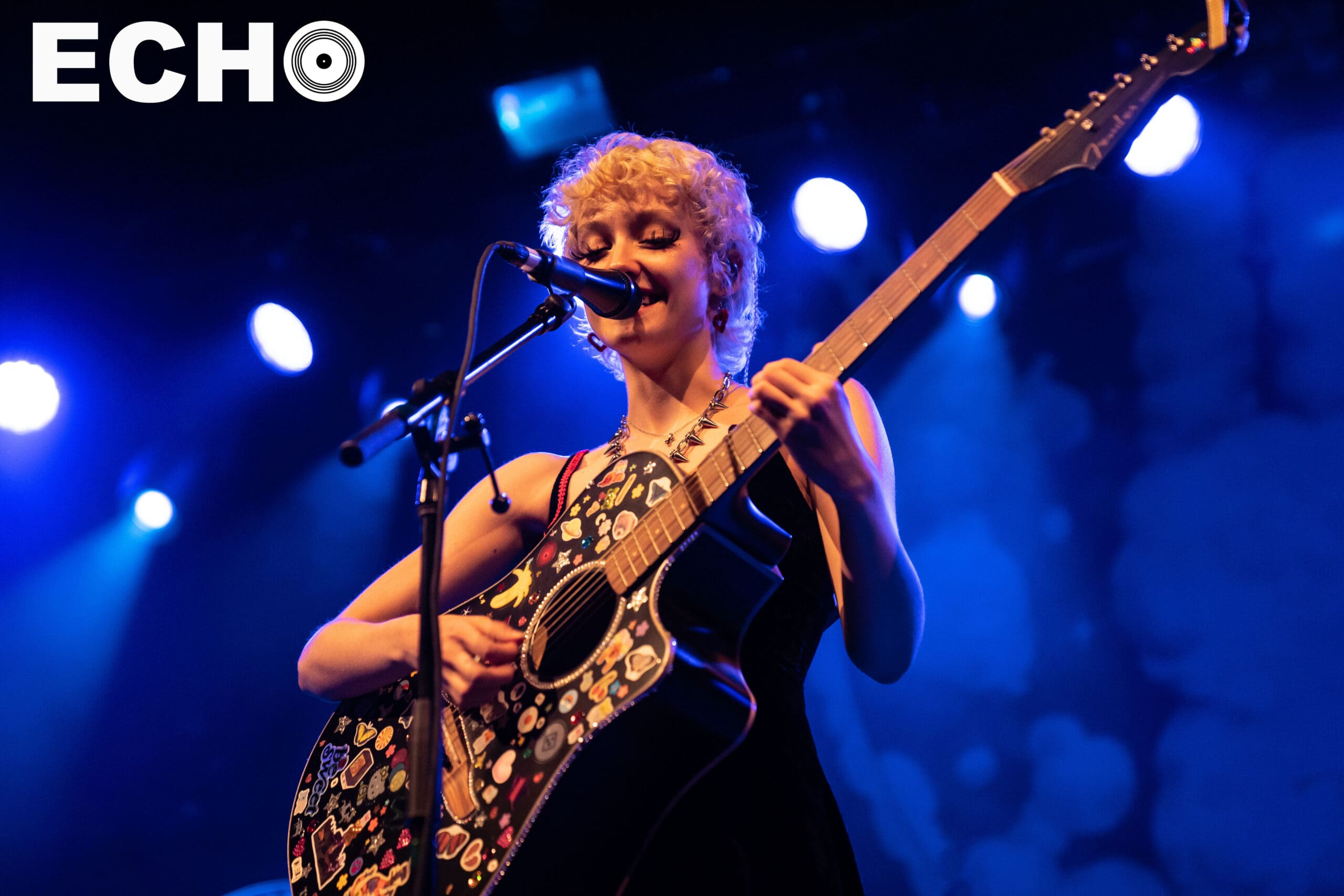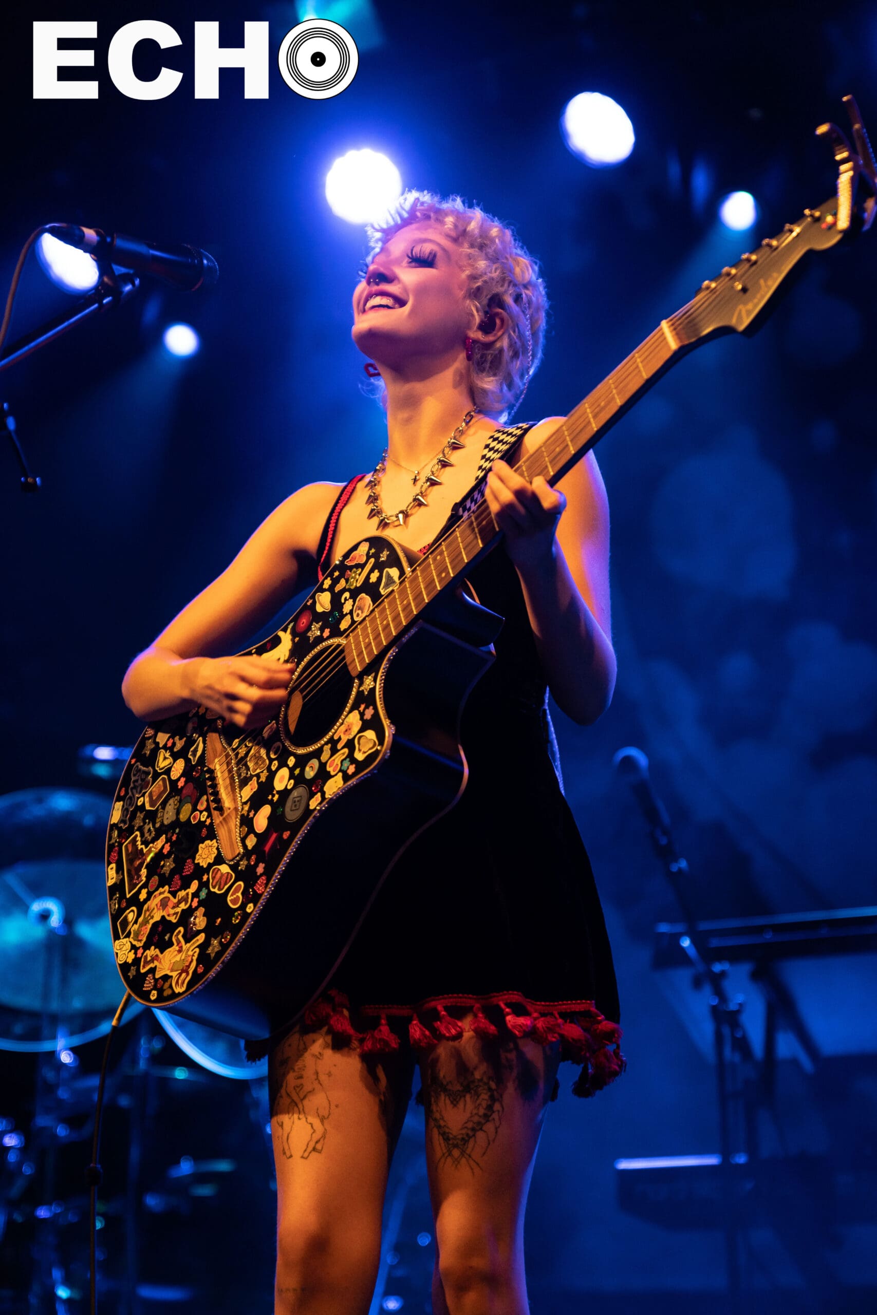 On June 10, in her platform sneakers and holding her sticker mosaiced guitar, Chloe shyly approached the microphone. With a wave, a smile, and a wish for a “Happy Pride,” Chloe began creating the welcoming environment that extended into the main act, mxmtoon’s set.
