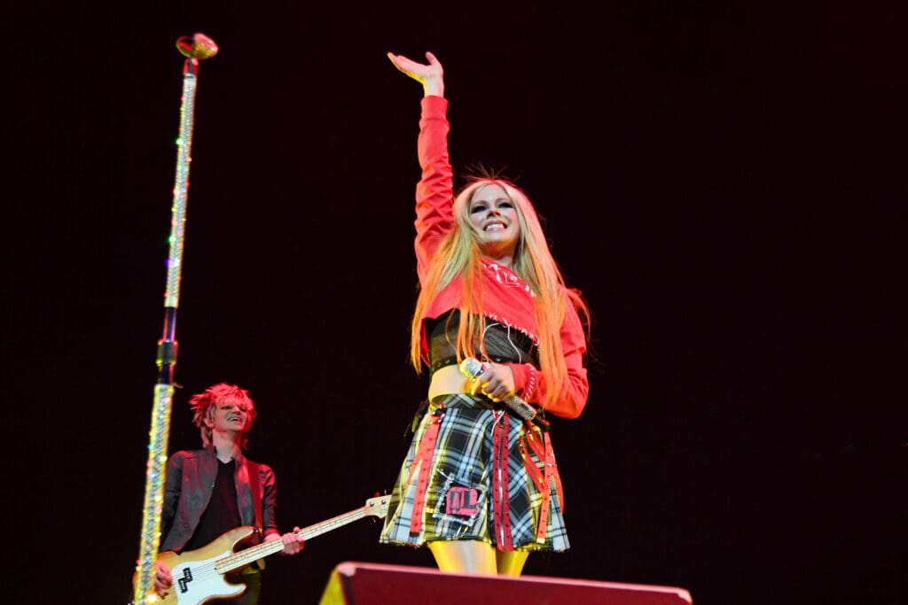 Avril Lavigne came out onto stage as a surprise guest to play her songs “Bite Me,” which is a song from her upcoming seventh album Love Sux. She also performed her classics “My Happy Ending,” “Girlfriend” and “Sk8er Boi.”