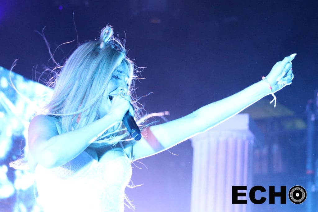 Some song highlights included “Hillside Boys”, her new release “Personal Hell”, and her chart topper “I Don’t Want It At All”. The simplistic stage set up, composed of a disc jockey booth, flanked by two screens, focused the attention on Petras and her stunning performance. High notes were effortlessly reached and she seemed to never tire even after spinning and jumping through her high intensity set.